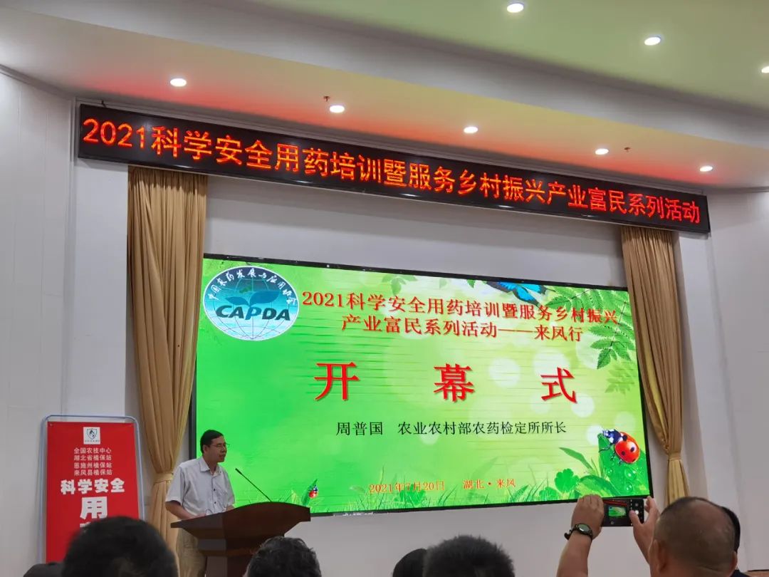 2021年7月20日,由全國(guó)農(nóng)業(yè)技術(shù)推廣服務(wù)中心、中國(guó)農(nóng)藥發(fā)展與應(yīng)用協(xié)會(huì)主辦,農(nóng)業(yè)農(nóng)村部農(nóng)藥檢定所、湖北省農(nóng)業(yè)農(nóng)村廳、恩施州人民政府指導(dǎo),湖北省植物保護(hù)總站、湖北省農(nóng)業(yè)行政執(zhí)法總隊(duì)、恩施州農(nóng)業(yè)農(nóng)村局、來(lái)鳳縣人民政府支持,來(lái)鳳縣農(nóng)業(yè)農(nóng)村局承辦的“2021科學(xué)安全用藥培訓(xùn)暨服務(wù)鄉(xiāng)村振興產(chǎn)業(yè)富民系列活動(dòng)”在湖北來(lái)鳳成功舉辦。