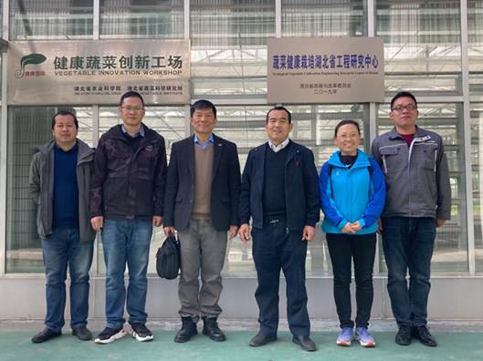 2023年3月26日,武大綠洲董事長林春鴻博士、執(zhí)行主任陳嬌、綠色防控工程師余浩一行前往湖北省農(nóng)業(yè)科學院蔬菜研究所學習交流,省農(nóng)科院蔬菜研究所首席科學家邱正明、副主任嚴承歡博士、矯振彪博士和胡震博士熱情的接待了我們。