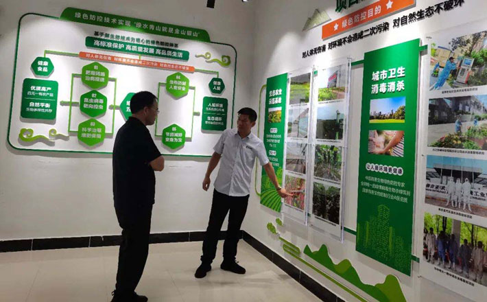 林春鴻董事長帶領(lǐng)大家參觀了公司展廳,為大家詳細(xì)介紹了武大綠洲公司優(yōu)勢技術(shù)、產(chǎn)品以及綠色防控技術(shù)理念。阮教授和曾教授對武大綠洲以微生物技術(shù)為核心的綠色防控體系、一切為了人民健康的經(jīng)營理念表示十分認(rèn)可,今后將在綠色防控技術(shù)領(lǐng)域開展深入合作。