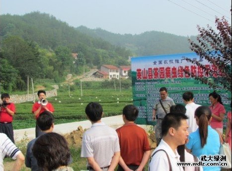 2011年7月21日,由湖北省植?傉局鬓k,武漢武大綠洲承辦在英山縣舉辦了茶園病蟲害綠色防控現(xiàn)場(chǎng)培訓(xùn)班,湖北省農(nóng)業(yè)廳副巡視員伍昌勝、全國(guó)農(nóng)技推廣中心防治處常玲專家、湖北省植?傉菊鹃L(zhǎng)肖長(zhǎng)惜、省農(nóng)業(yè)廳經(jīng)作處、果品辦,省農(nóng)科院,英山縣政府等有關(guān)單位領(lǐng)導(dǎo)和專家出席了開(kāi)班儀式,省茶葉綠色防控示范點(diǎn)植保站負(fù)責(zé)人、英山縣各鄉(xiāng)鎮(zhèn)及茶葉公司技術(shù)人員等80多人參加了培訓(xùn)班學(xué)習(xí)。培訓(xùn)班由武漢武大綠洲生物技術(shù)有限公司承辦,由省植?傉靖闭鹃L(zhǎng)羅漢鋼主持。